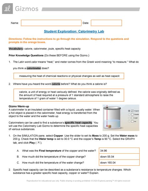 Download student exploration calorimetry lab gizmo answer key PDF Paperback